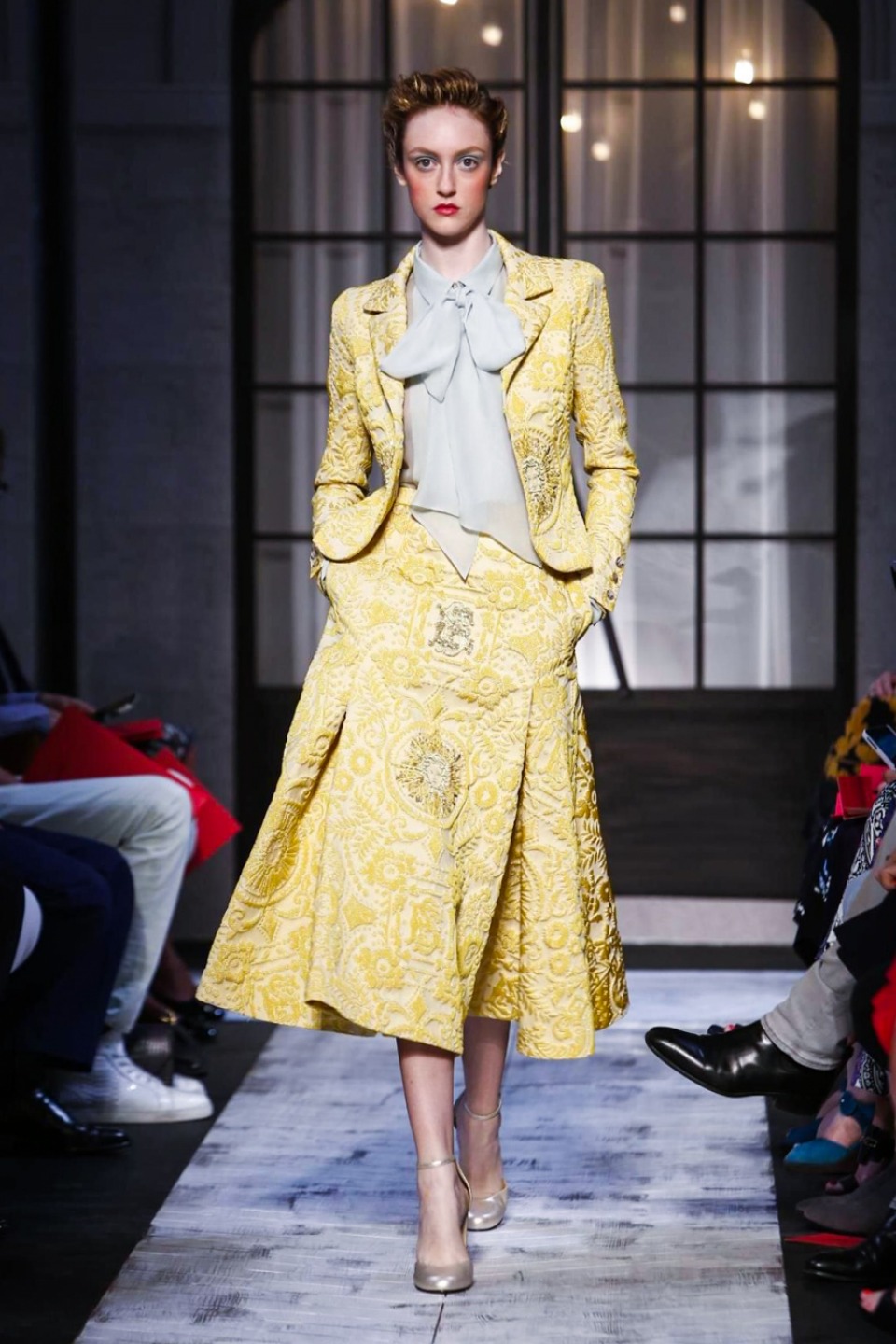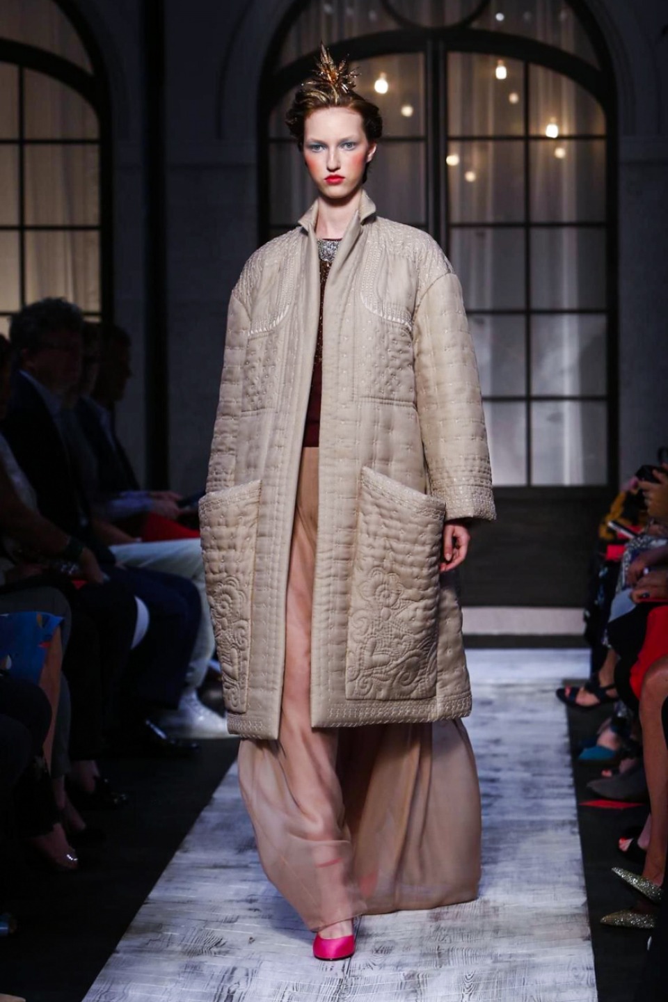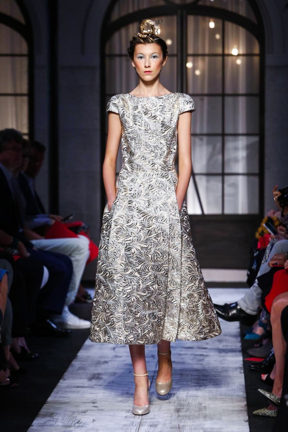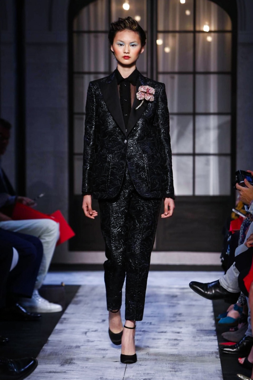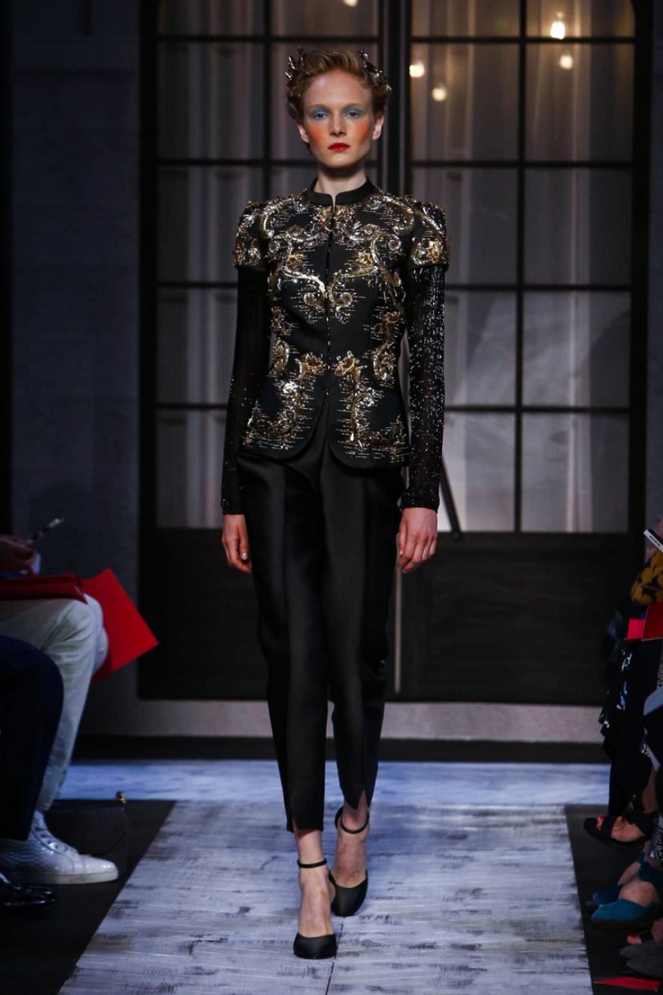 There was also an emphasis on the mixing and matching of fabrics to create texture and depth. Brocade coats, sequin tops, jacquard suits, cashmere trousers, minks and tweeds all held their own alongside one another, blending together to achieve an overall effect of unconventional elegance. Meanwhile quirky accessories such as whimsical and imaginative sculpted tiaras kept things light and playful.The collection is plenty of the couture not so much of the Leigh Bowery.