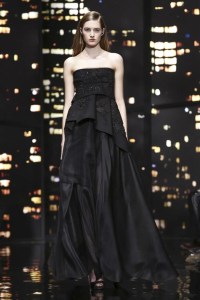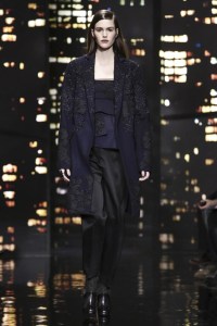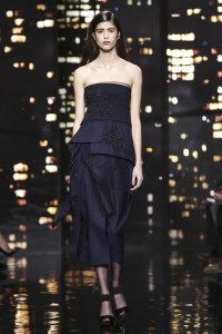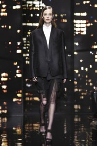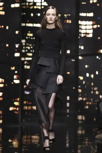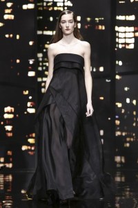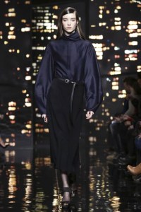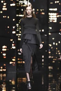 The New York skyline at night seductively shimmered and glistened as the background of today’s Donna Karan show. Donna has been dressing her New York woman for three decades now, compulsively so, and at a time when other designers are thinking globally you get the sense that for Donna it’s all about this city. Where else? She might travel and pick up treasures from around the world but she always comes home. So, today she went about dressing her from day into night, mirroring the city’s night colours – black, midnight blue, asphalt grey and glimmering gold.