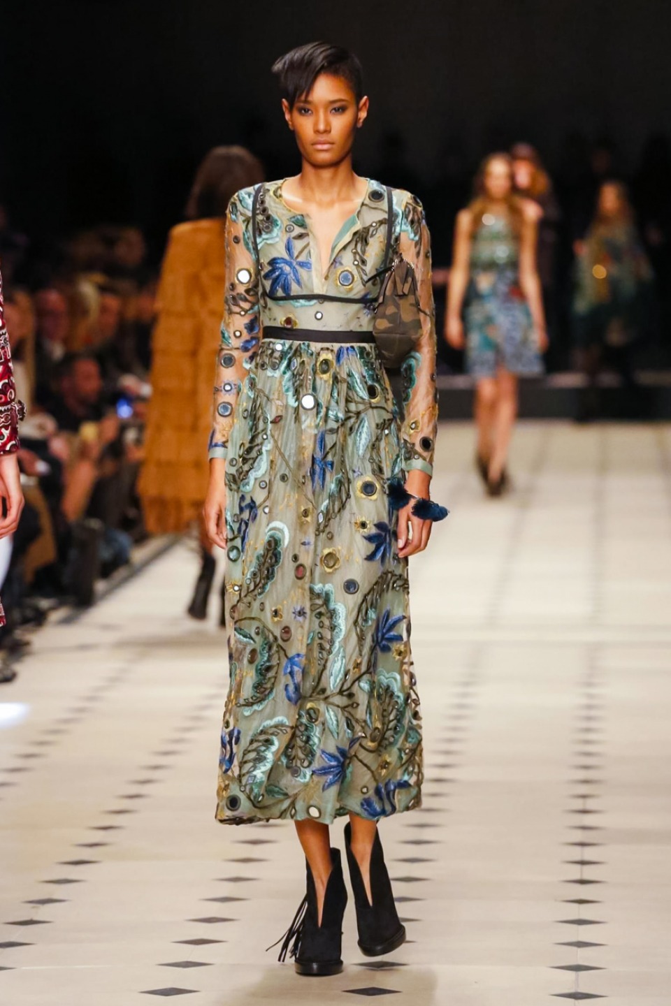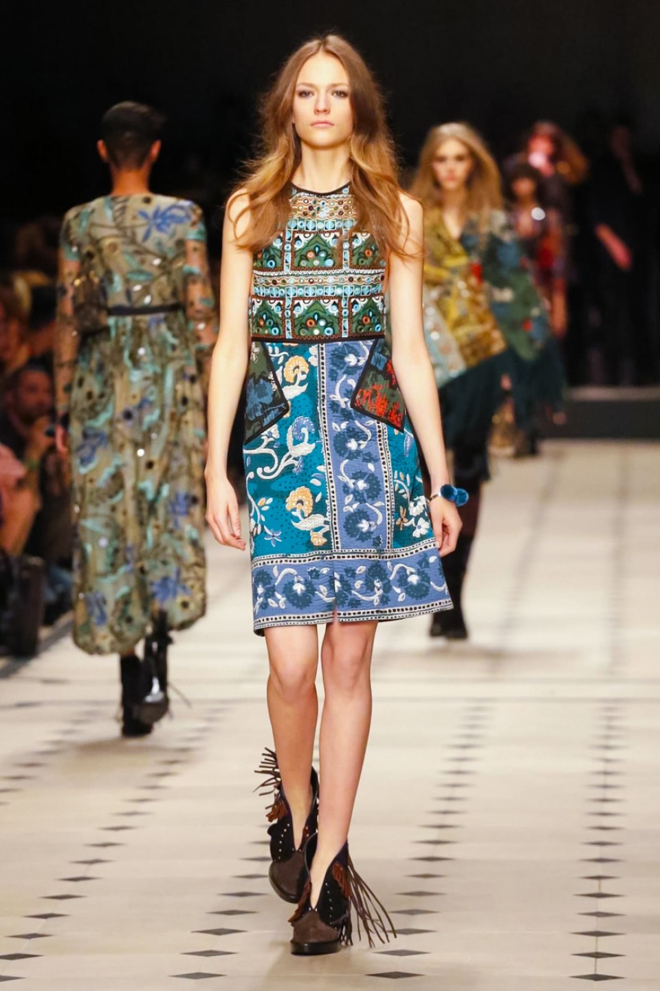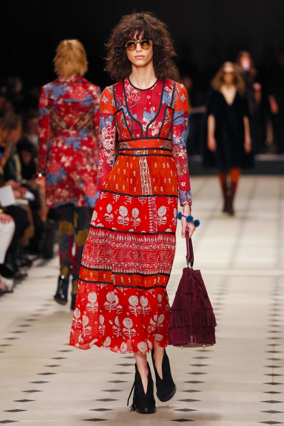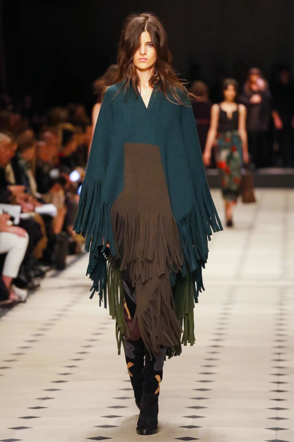 Round-Up : The Burberry Prorsum Fall/Winter 2015-2016 collection designed by Burberry Chief Executive & Chief Creative Officer Christopher Bailey. Burberry Prorsum show was one of the biggest of the London Fashion Week last February and it was with a good reason. This brand can speak to our hearts and our fashion sense with ease. The collection pieces are truly lovely, it’s a breath of fresh air . Plus, they stayed true to the bohemian inspirations of the 1970s spiced up with ’60s, with the floral prints and the use of fringe everywhere, from the shoes to the handbags to the ponchos and accents on the garments. With all the colors available through this collection the fall and winter seasons will be not so boring and i’m sure that very soon we will see a lot of pieces from * Burberry Prorsum Fall/Winter 2015-2016* collection in many fashion Editorials.