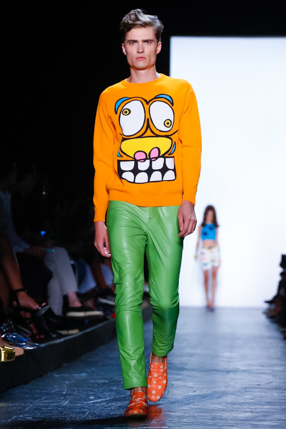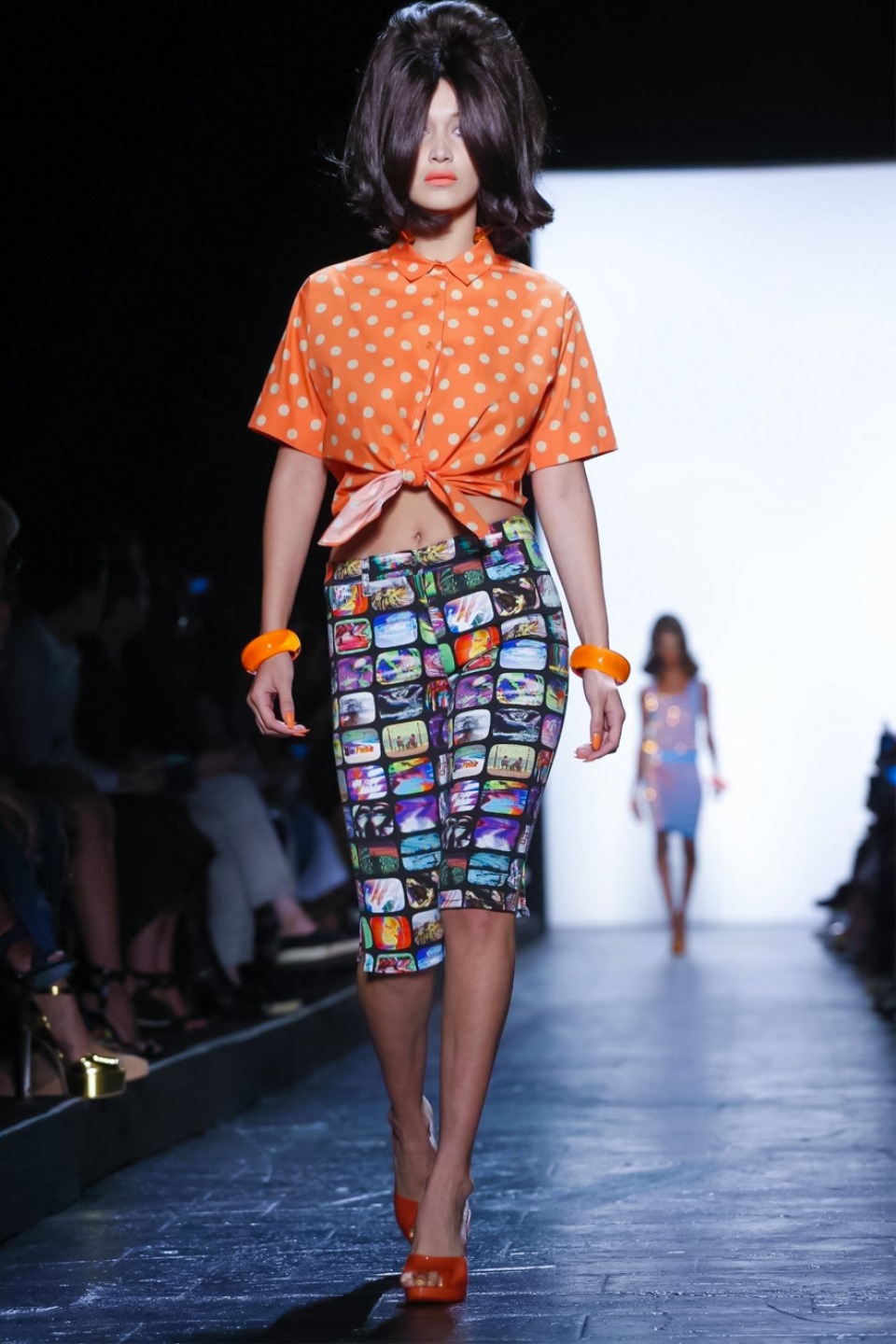 The collection was chock-a-block full of playful ‘60s references.As always, Scott had some killer kitsch accessories such vintage-shaped TV bags , vibrant translucent bracelets and sunglasses.
