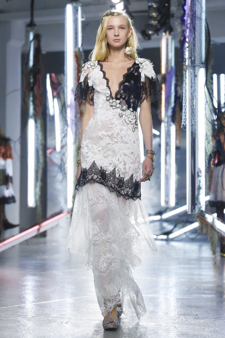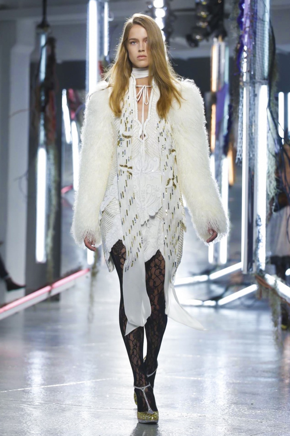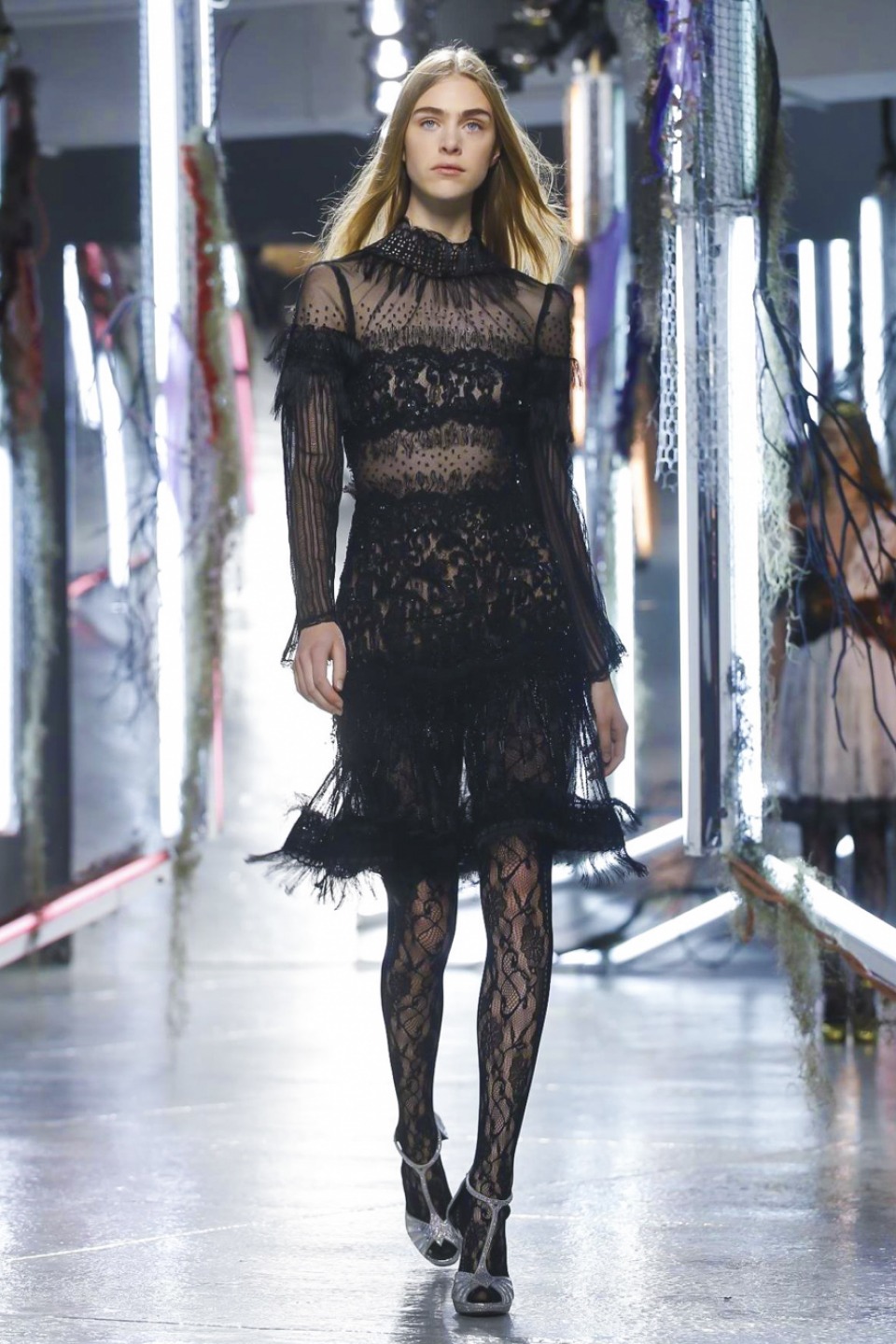 One of the best collections Rodarte had shown in this years, it is a kind of soft glam-rock tenderly sewn into immensely intricate lace dresses, trailing long silk scarves and an aura of Old Hollywood glitter in its wake.