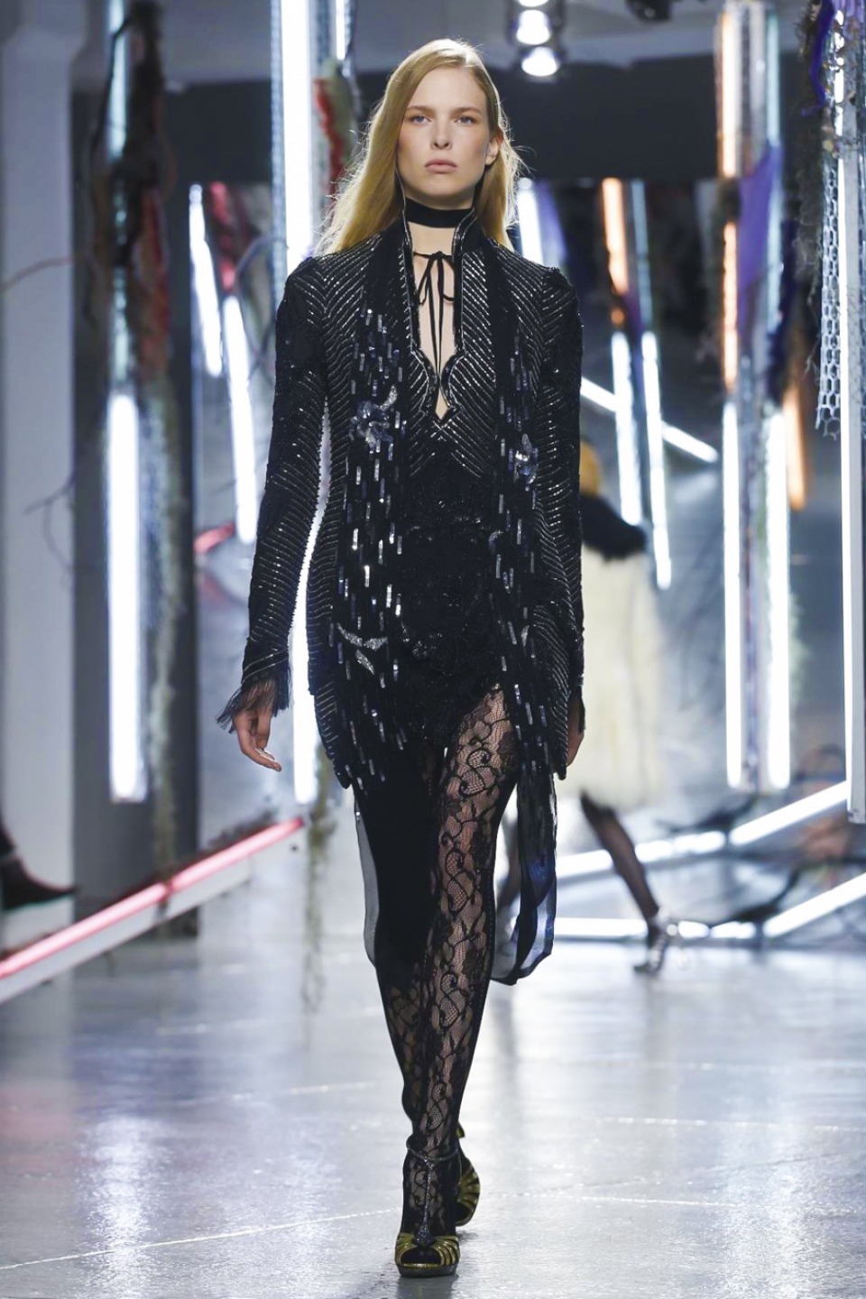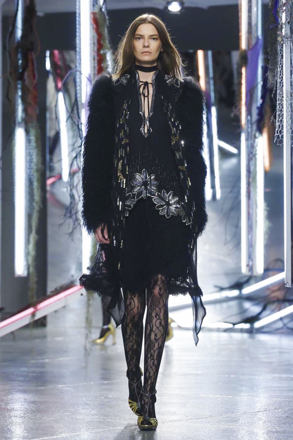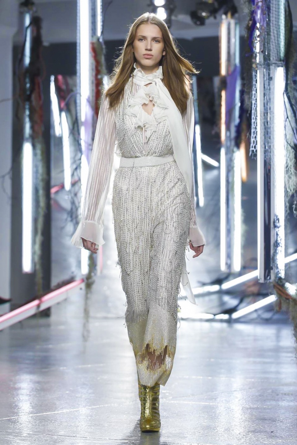 One of the best collections Rodarte had shown in this years, it is a kind of soft glam-rock tenderly sewn into immensely intricate lace dresses, trailing long silk scarves and an aura of Old Hollywood glitter in its wake.