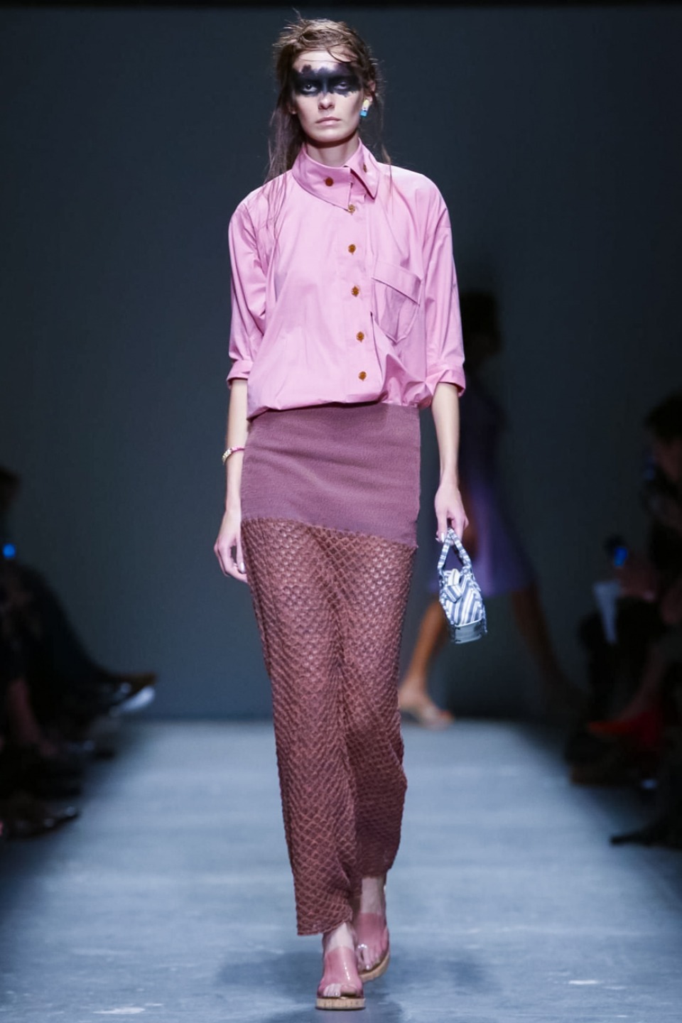 The most piquant contradiction in this show was how incompatible the collection seemed with the rhetoric around it. Because while the styling was absolutely maverick—all smeared robber-mask eyes and sleep-in-a-tree hair—there is no other way to describe the clothes only with the word :conservative!