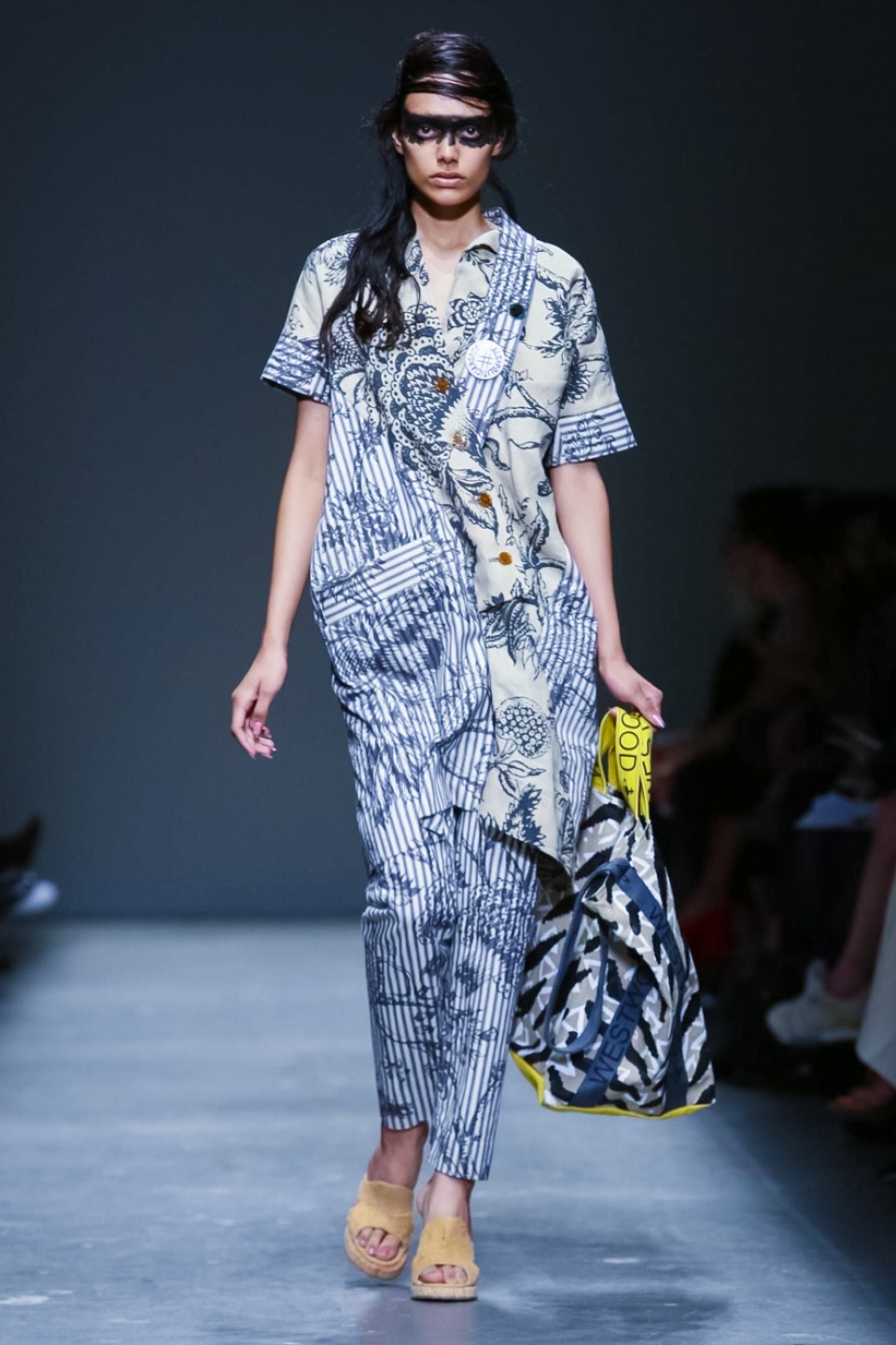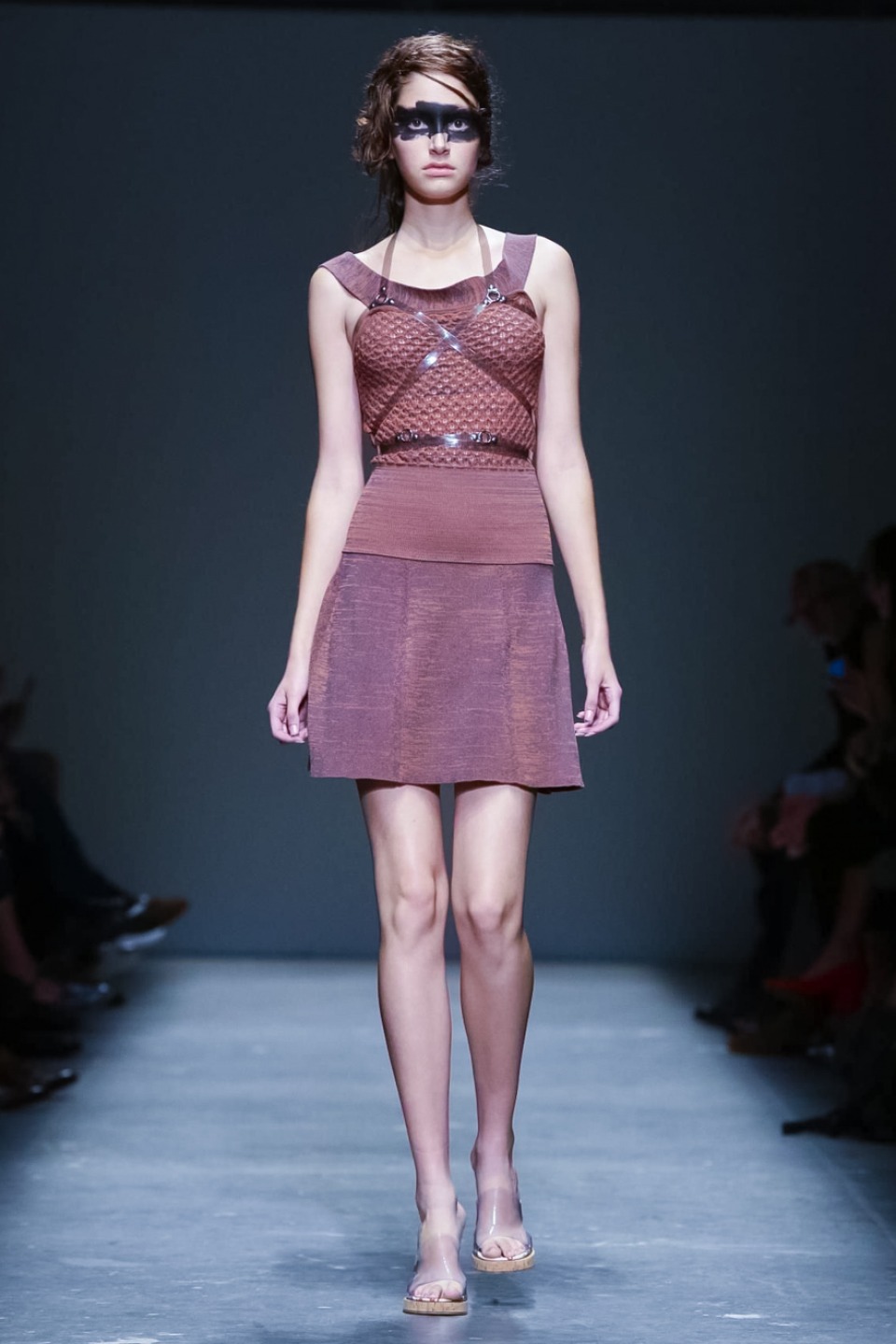 Held in a basement space grippingly advertised outside as an “Alien Sex Club,” the runway was overlooked by a balcony on which gathered a band of paper-crowned model/protestors holding banners hostile to politicians and shale gas extraction.