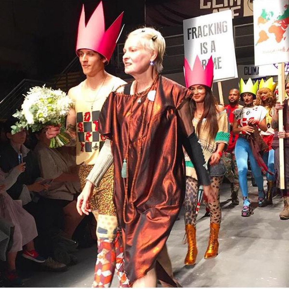 Can you reasonably rage against the machine when you are a highly profitable cog in it? This is an obvious paradox inherent in Dame Vivienne Westwood’s policy of using her shows as a podium from which to preach about the iniquities of mass consumerism and fossil fuel dependence.