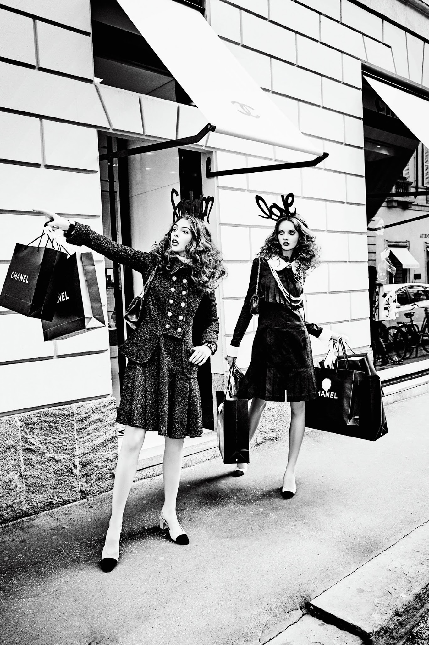 *Fun Time in Montenapoleone* Editorial with Anna Grostina and Vittoria Ceretti lensed by Ellen von Unwerth for September 2015 issue of Vogue Japan. Fashion Editor: Alice Gentilucc Hair: Davide Diodovich , make-up: Adalberto P , nails: Imma Mennuti