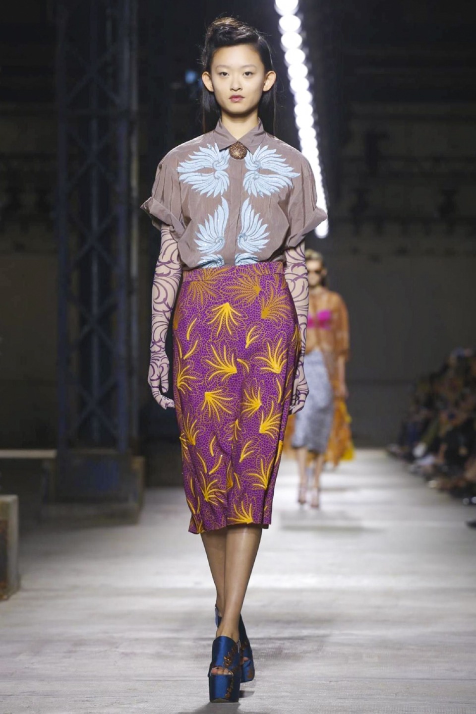 “This season it was really about the flamboyant woman – she’s not just eccentric, because that can be old with 25 cats,” said Van Noten backstage. “She wants to live, she wants to show herself, she wants to enjoy life. She knows how to mix things and she dares to.”