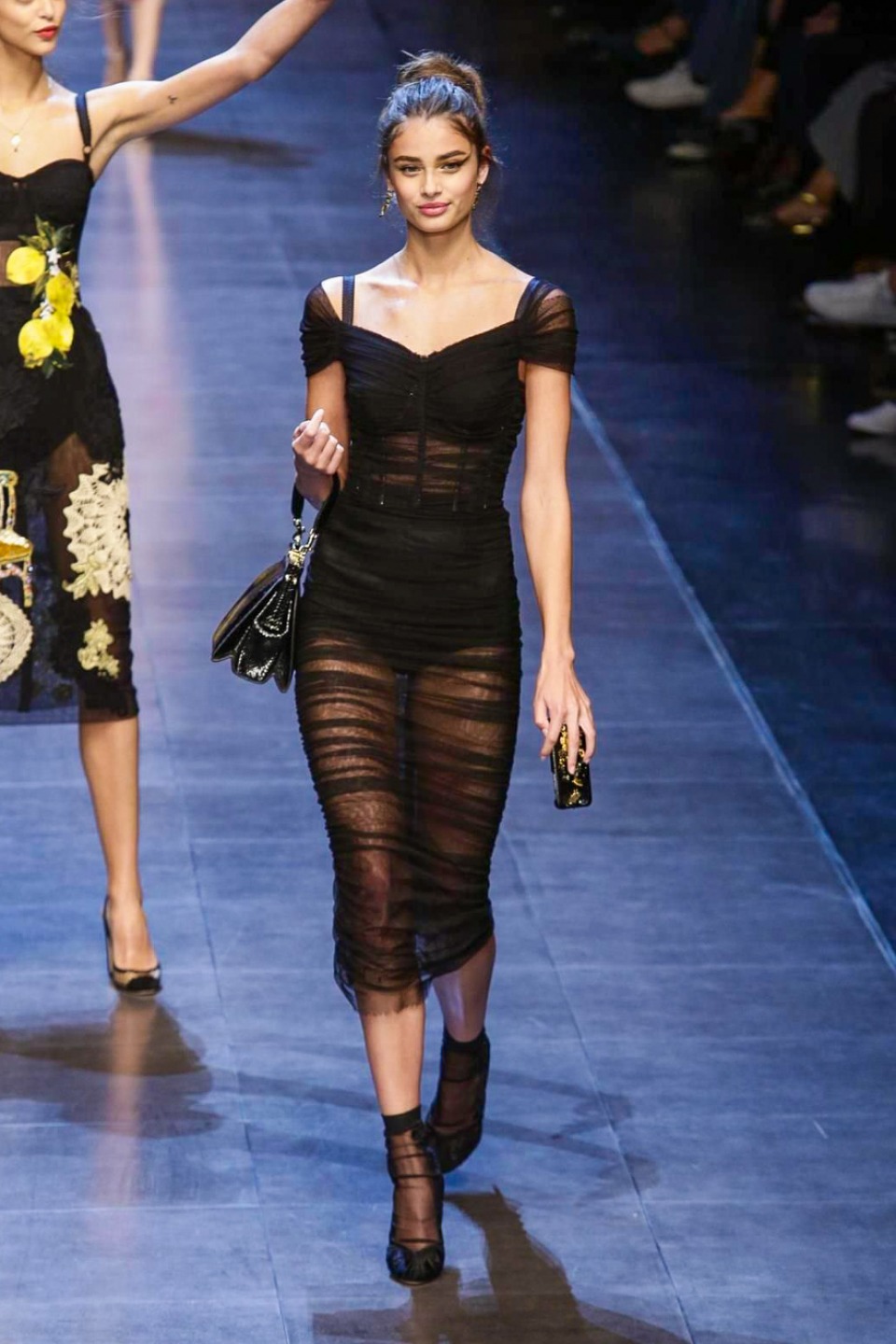 In what turned out to be quite the meta Dolce&Gabbana show this afternoon, the selfie and the rise of social media reigned supreme.Guests entered the brand’s in-house show space Sunday afternoon to find an Instagram-bait set with featuring a traditional Italian restaurant, flanked by stands for fruit and souvenirs. Four large screens hung above the audience displaying one word: „Selfie.“ Just as the show began, the brand used them to give guests very little notice of what was about to take place. The screens read, „The models walking the fashion show will be taking selfies with you which will be published online. Be part of this unique fashion moment!“ I’m sure a lot of us would like to be there today afternoon,thanks socialnetworks and Fashion sites we all were the part of this Show, watching live stream! Sure you saw, several of the models walked with phones in their hands and would occasionally stop mid-walk to take a selfie, which would almost immediately be displayed on the aforementioned screens. Backstage selfies were shown as well, and the brand also shared many of them on social media. Of course, this wasn’t a new concept for the brand that featured models talking seflies on catwalk.Not only did the stunt provide content for Dolce & Gabbana’s own channels, but everyone in the audience wanted to document it as well, leading many editors to break any one-Instagram-per-show rules they may have established pre-fashion month.