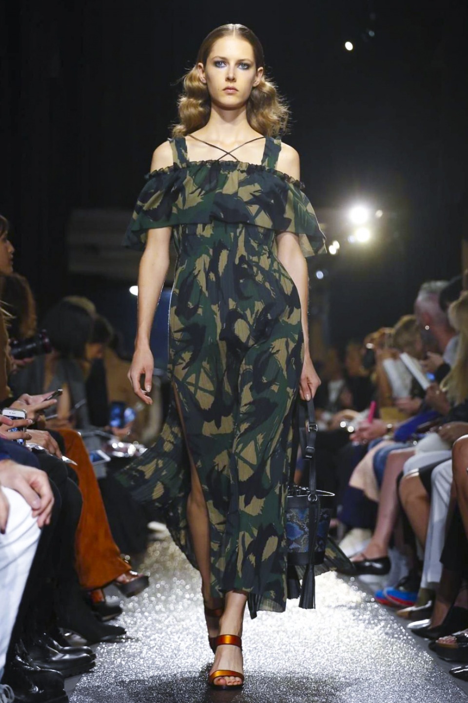Giambattista Valli is finding favour with the little babydoll dress right now – it’s a style that underpins his Giamba line and it’s one that he gave to us in the plenty last season. Only where then it was over trousers for long and lean lengths, this time round it was about bare legs on show and great flat-formed gladiator sandals that climbed the length of the leg beneath a coat of similar proportions up top. He continued with his riff on Seventies patterning and made sure there was a handful of gowns to swoon over too,they billowed in hippy grace and half morphed into the babydoll numbers that preceded them. Valli seems to have found a new youthful groove when it comes to his ready-to-wear line.