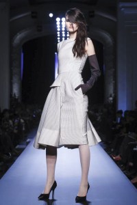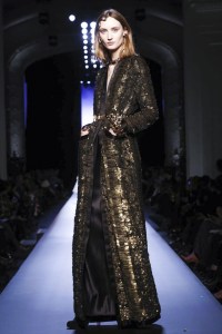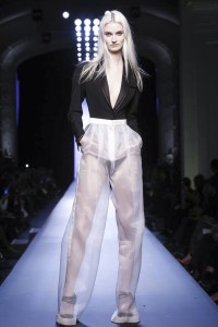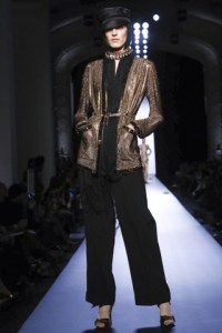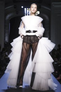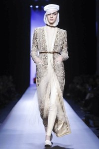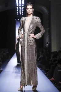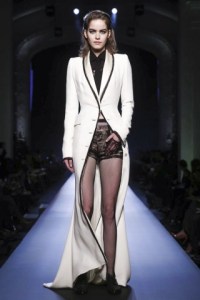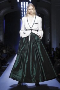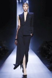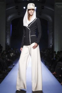 Bagpipe music, dark lighting, and sailor inspired looks all debuted at the new Jean Paul Gaultier Fall/Winter 2015 couture collection in homage to Bretagne, a region in France still full of tradition.