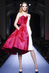 Stunning art forms with intricate details from top to bottom with huge ball gowns, Anna Cleveland debuted the final wedding gown and it certainly deserved around of applause. Gaultier and Cleveland danced down the runway hand and hand to the song „In The Navy“ by Village People.The Breton stripe, as worn by sailors, has become synonymous with Jean Paul Gaultier over the years.