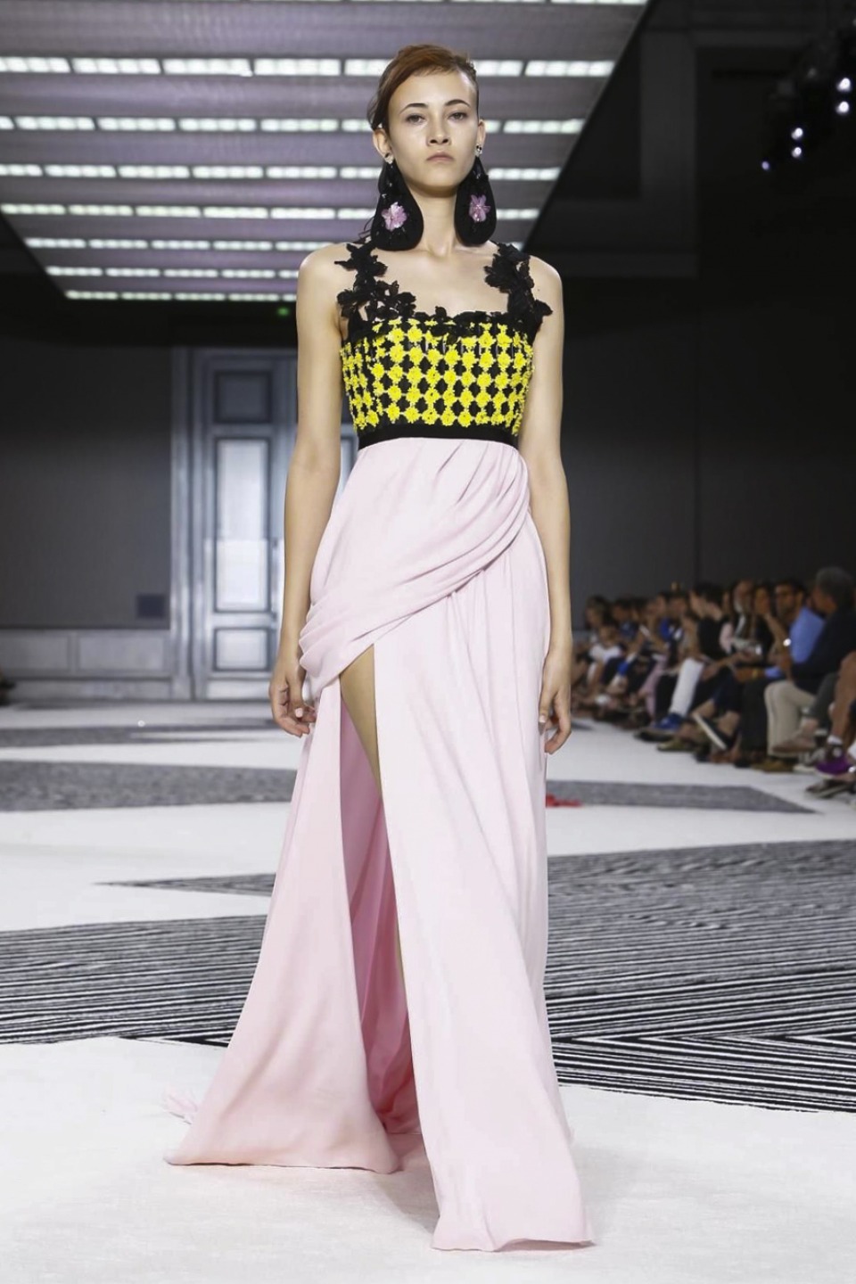 Celebrating ten years in the business, Giambattista Valli ended the night with an extravagant „Flower Obsession Ball“ at the Opéra Garnier, complete with a floral dress code, colorful blooms projected onto every surface, and a brand new set of M.A.C. lipsticks in hues inspired by the pinks of his haute couture. But before that, the designer’s 9th haute couture was par for the course. Flowers and colors are what women want from Valli, and that’s what they got, to a point.